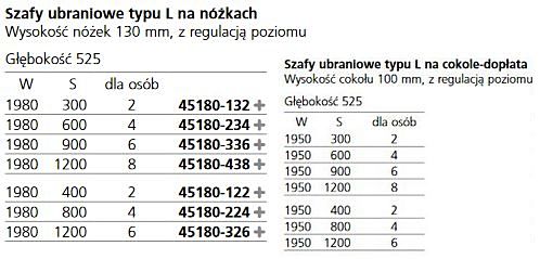 Podana cena podstawowa dotyczy szafy kod 45180-122 o wymiarach wysokość 1980x400x525 mm z tabelki poniżej. Pozostałe modele na zapytanie.