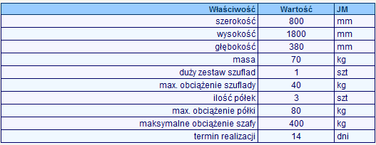 Szafa wykonana z blachy stalowej, malowana proszkowo, konstrukcja zgrzewana: