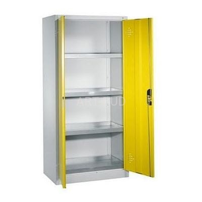 Zwiększa bezpieczeństwo dzięki możliwości zamknięcia szafy na zamek Ergo-Lock, który jest łatwy w obsłudze nawet w rękawicach roboczych i posiada blokadę drążków ryglujących. Konstrukcja szafy wykonana ze stali wysokiej jakości, lakierowanej proszkowo w kolorze RAL7035 (jasnoszary), drzwi w kolorze RAL 1023 (żółtym). Posiada wzmocnione drzwi, wyposażone w otwory wentylacyjne oraz regulowaną wysokość półek (tac) co 15 mm. Półka (taca) o pojemności 20 l posiada szczelną konstrukcję o maks. obciążalności 80 kg.