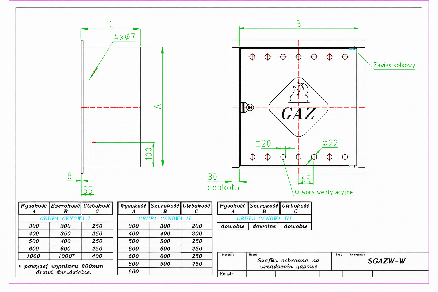 Szafka gazowa GAZ W wewnętrzna wnękowa lub zawieszana