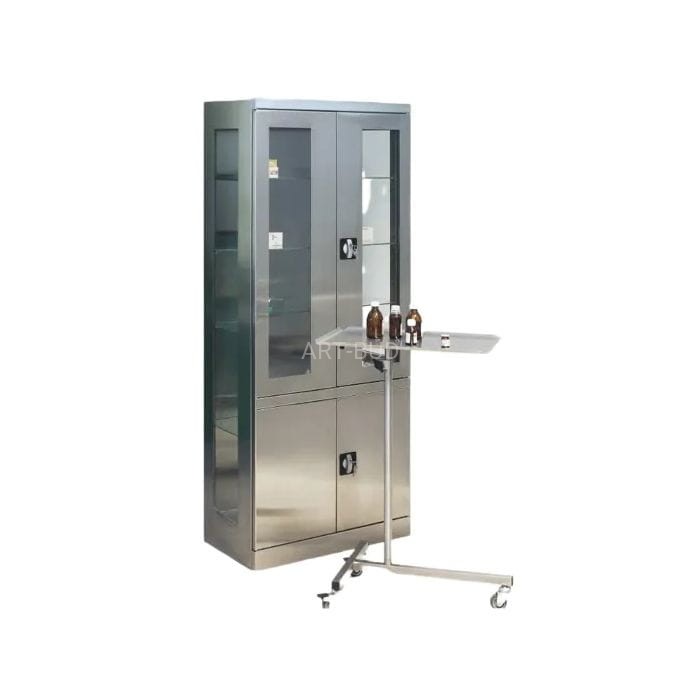 Przedstawiona oferta szafki nie dotyczy widocznego na zdjęciu stolika medycznego, który jest elementem aranżacji i jest oferowany osobno.