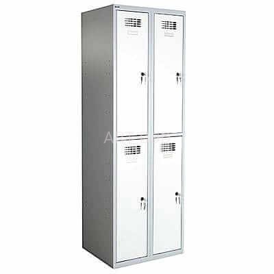 Szafka metalowa ubraniowa SUS 322 W posiada dwa schowki w pionie, w dwóch kolumnach. Każda komora wyposażona została w samoprzylepny plastikowy wizytownik, drążek oraz dwa wieszaki na ubranie. Szafka ubraniowa metalowa jest zamykana na zamek cylindryczny, z ryglowaniem w jednym punkcie.