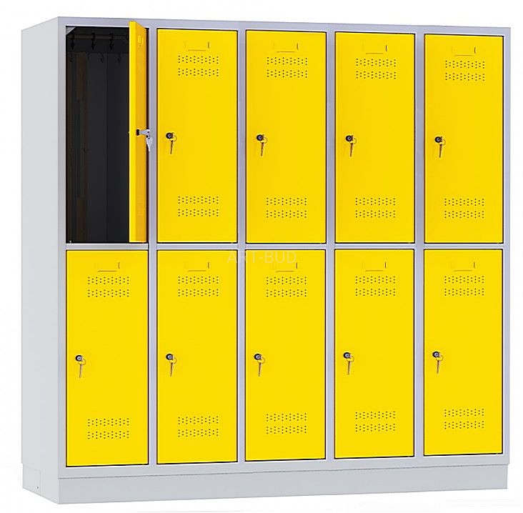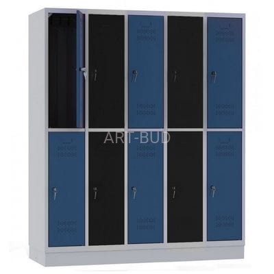 wyposażenia a wszystko to w konkurencyjnej cenie, decyduje o ogromnym zainteresowaniu nabywców.Szafa podzielona jest na 10 mniejszych szafek. Znajduje szerokie zastosowanie jako szafka szkolna, basenowa czy pracownicza. Produkt bardzo wysokiej jakości, trwały, funkcjonalny i elegancki. Solidna konstrukcja stalowa z wysokiej jakości blachy europejskich producentów, cokół o wysokości 100mm, drzwi z profilem wzmacniającym, osadzone na ukrytych zawiasach, na drzwiach otwory wentylacyjne oraz ramka na etykietę, łatwość utrzymania czystości dzięki gładkiej, jednolitej powierzchni oraz wentylacji otworowej. W każdej komorze drążek z przesuwanymi wieszakami.