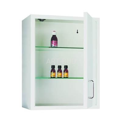 Szl 101 to metalowa szafka wisząca z pojedynczymi drzwiami metalowymi, wewnątrz posiada dwie półki. Posiada jednoskrzydłowe drzwi metalowe bez zamka. Przeznaczona głównie do gabinetów lekarskich i zabiegowych. Całość konstrukcji, poza elementami szklanymi, pokryta lakierem proszkowym w kolorze wybranym z palety 15 kolorów. Model wiszącej szafki lekarskiej, której korpus oraz drzwi wykonane są z wysokiej jakości blachy stalowej. Posiada 2 półki wykonane z hartowanego szkła o maksymalnym obciążeniu każdej wynoszącym 5 kg. Drzwi posiadają uchwyt oraz zatrzask magnetyczny. Szafka wisząca lekarska SZL 101 posiada w tylnej części otwory montażowe, które pozwalają na łatwe zamocowanie szafki na ścianie.