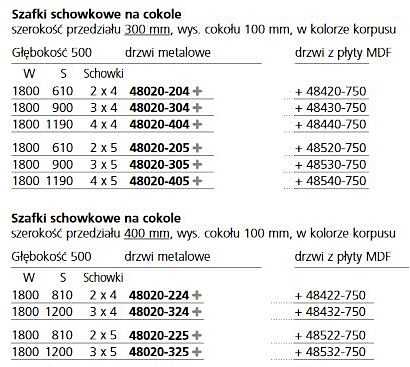 Podana cena podstawowa dotyczy szafy kod 48020-324 o wymiarach wysokość 1800x1200x500 mm z tabelki poniżej. Pozostałe modele na zapytanie.