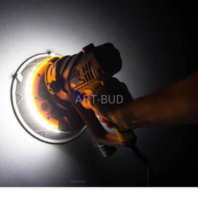 Szlifierka do gipsu posiada podświetlenie LED 360° wokół tarczy dzięki czemu nie potrzeba używać dodatkowych halogenów podświetlających ścianę. Obszar roboczy jest doświetlony dokładnie tam, gdzie aktualnie szlifujemy, sprawia to, że praca jest bardziej precyzyjna a zamierzony efekt łatwiejszy do uzyskania. Diody są zabezpieczone specjalną żelową powłoką ochronną, która zabezpiecza je przed wnikaniem pyłu, powłoka ułatwia także czyszczenie modułu oświetlenia.