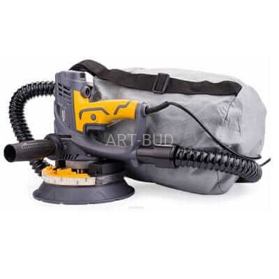 Szlifierka do gipsu wyposażona jest w system odprowadzania pyłu przystosowany do pracy z odkurzaczem przemysłowym, na wyposażeniu znajduje się worek zbierający pył oraz wąż umożliwiający podłączenie do odkurzacza.