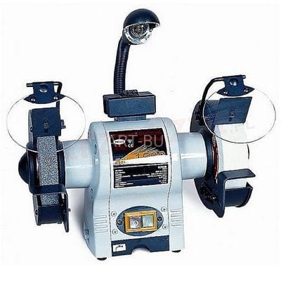 Szlifierka stołowa Proma BKL-1500 wyposażona w oparcie materiału z prowadzeniem do ostrzenia wałków lub wierteł.