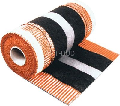 Taśma wentylacyjno-uszczelniająca na kalenicę i grzbiety wykonana z dwóch pasów poplisowanych taśm miedzianych, łączona z tkaniną polpropylenową w technologii klejenia na gorąco i przeszywana nićmi.