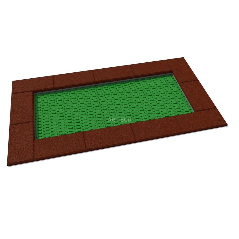 Trampolina prostokątna przeznaczona do stosowania na placach zabaw o intensywnym użytkowaniu. Mata do skakania wykonana jest z bardzo wytrzymałych lamelek Hercules o szerokości min. 37 mm, posiadających kształt litery „V” oraz wzmacniającą kratownicę. Dzięki unikalnemu kształtowi lamelek zmniejszone zostały do zaledwie 7 mm przestrzenie pomiędzy elementami maty co zapobiega wpadnięciu do wnętrza trampoliny drobnych