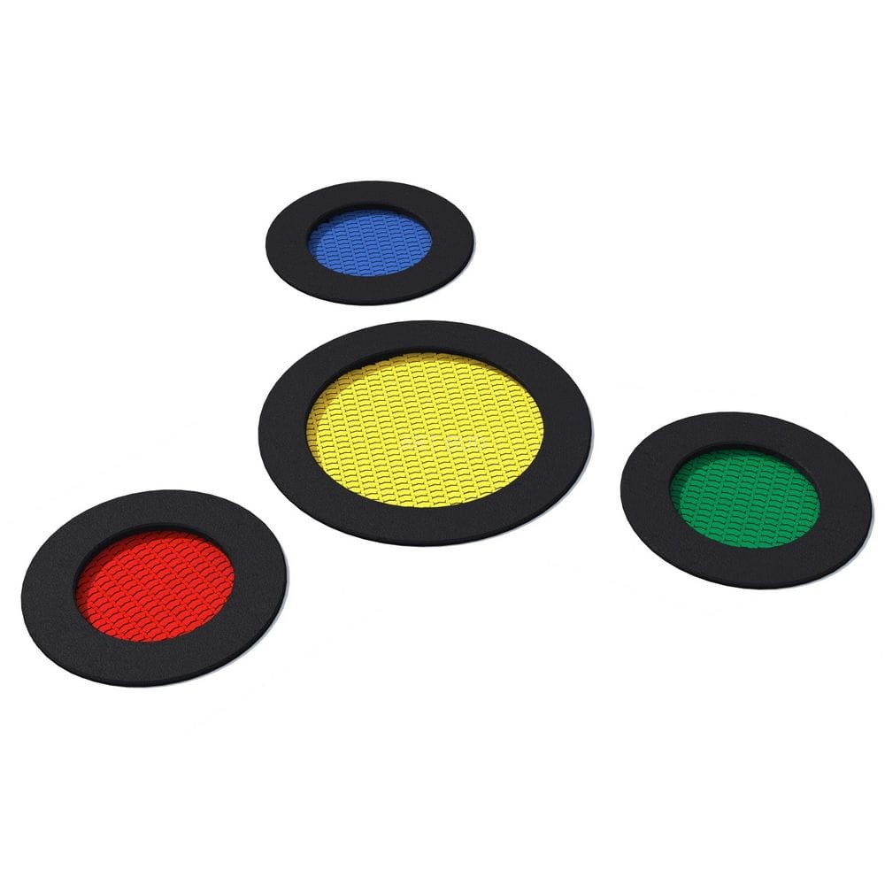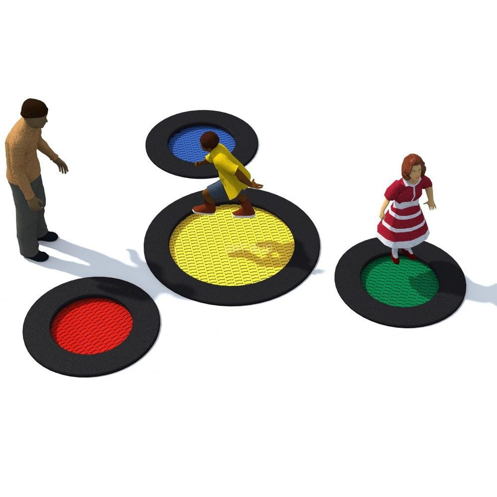 Zestaw 4 trampolin okrągłych (3 sztuki Rado 125 oraz 1 sztuka Rado 175) przeznaczony do stosowania na placach zabaw o intensywnym użytkowaniu. Mata do skakania wykonana jest z bardzo wytrzymałych lamelek Hercules o szerokości min. 37 mm, posiadających kształt litery „V” oraz wzmacniającą kratownicę. Dzięki unikalnemu kształtowi lamelek zmniejszone zostały do zaledwie 7 mm przestrzenie pomiędzy elementami maty co zapobiega wpadnięciu do wnętrza trampoliny drobnych przedmiotów jak np. klucze czy telefony komórkowe. Mata dostępna jest w 8 kolorach, istnieje także możliwość wykonania grafiki na macie. Gumowy kołnierz trampoliny występuje w 2 kolorach standardowych i 23 kolorach specjalnych. Na kołnierzu można dodatkowo wykonać dekoracyjny wzór. Trampolina może być wyposażona w podnoszoną pokrywę, która ułatwia czyszczenie jej wnętrza.