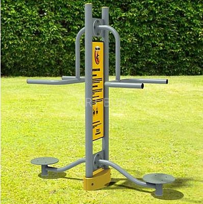 Twister (pylon), urządzenie siłowni zewnętrznej na powietrzu z serii Fitness: ćwiczenia wspomagają aktywność stawów biodrowych oraz kręgosłupa lędźwiowego, angażują mięśnie skośne i wewnętrzne brzucha, rozciągają mięśnie piersiowe.