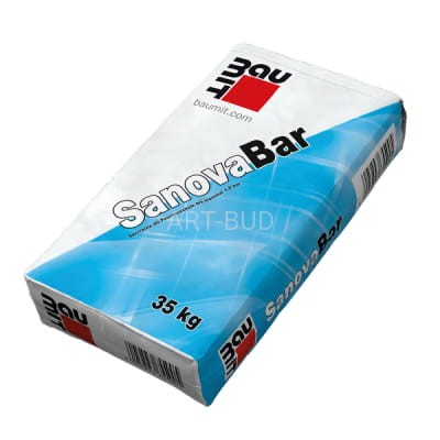 Odporny na wysolenia, renowacyjny tynk uszczelniający. Przeznaczony do uszczelniania podziemnych części budowli. Tynk renowacyjny Baumit SanovaBar to sucha zaprawa budowlana, przeznaczona do zabezpieczenia budynków oraz wykonywania izolacji pionowych na zewnątrz i wewnątrz obiektów. Zaprawa renowacyjna SanovaBar składa się z piasku, cementu oraz specjalnych domieszek, które zwiększają zwartość i przyczepność oraz umożliwiają lepszą obróbkę mieszanki. Baumit SanovaBar to tynk renowacyjny, który wykazuje się efektywnym działaniem uszczelniającym. Jest to rezultat specjalnego doboru ziaren oraz odpowiednich dodatków, dzięki którym otynkowane powierzchnie stają się znacznie bardziej odporne na szkodliwy wpływ wody o ciśnieniu do co najmniej 1.5 bara. Pokryte tynkiem SanovaBar powierzchnie cechują się również wysoką odpornością na występujące obciążenia mechaniczne. Tynk renowacyjny Baumit Sanova Bar pomaga izolować budynek przed wpływem wody, umożliwia również stworzenie doskonałej izolacji pionowej w strefie poniżej poziomu zerowego. Zaprawa renowacyjna chroni także przed wodą odpryskową i można stosować ją zarówno w trakcie renowacji, jak i modernizacji budynków. Tynk renowacyjny SanovaBar można stosować również w połączeniu z izolacją poziomą we wnętrzach budynków.