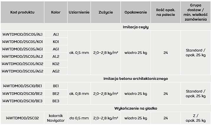 Podana cena dotyczy wiadra 25 kg w kolorach i uziarnieniach z tabeli poniżej