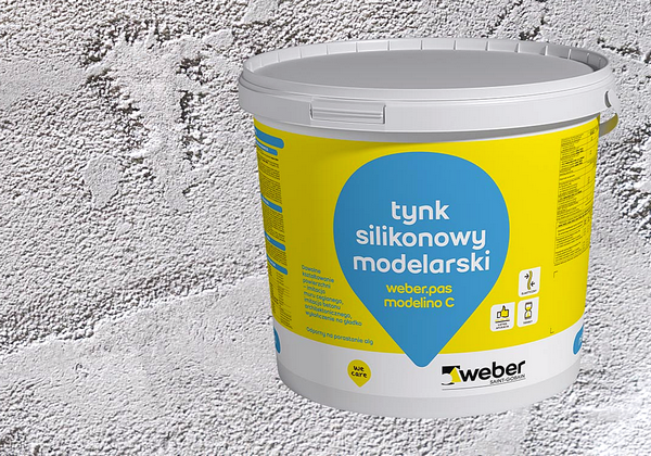 Ten drobnoziarnisty tynk modelarski weber.pas modelino C nawiązuje do betonu nie tylko w swojej fakturze, lecz również w kolorystyce. Jest dostępny w trzech odcieniach szarości – od ciemnego, przez pośredni, po jasny odcień. Tynk weber.pas modelino C jest odporny na uszkodzenia mechaniczne, więc można go bez problemu aplikować np. w korytarzach, gdzie ryzyko uszkodzeń jest dużo większe. Dekoracyjny tynk a'la beton pozwoli także zamaskować nierówności ścian. Przy tynkowaniu elewacji istotne znaczenie ma również fakt, że tynk weber.pas modelino C jest w pełni odporny na warunki pogodowe. Co więcej, dzięki dodatkom biobójczym i ciemnej kolorystyce otynkowana powierzchnia nie będzie porastać.