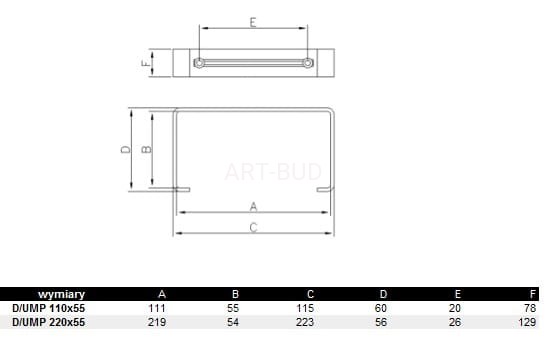 Uchwyt mocujący płaski ABS kanału wentylacyjnego D/UMP 110x55 mm lub 220x55 mm DOSPEL