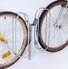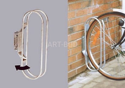 Funkcjonalny uchwyt na rowery nie zajmujący dużo miejsca. Regulowany na boki lub stały. Do bezpośredniego przyczepienia do ściany. Druga wersja na 2 rowery - 2 uchwyty na wsporniku przymocowanym do podłoża. Galwanizowane.