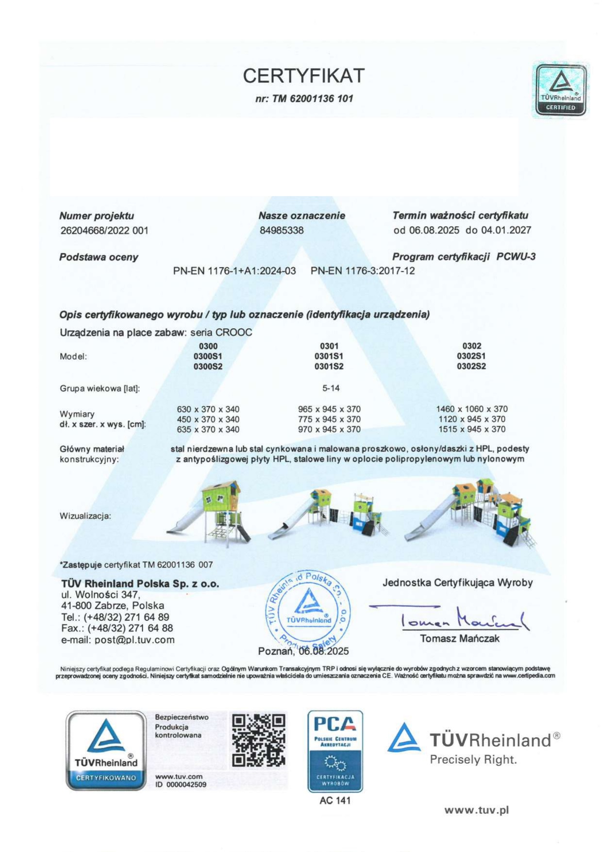 Wykonanie elementów składowych (daszki, osłonki, panele edukacyjne) z płyt HDPE oraz zjeżdżalnia tubowa i rurowa ze stali nierdzewnej chroni konstrukcję przed zmieniającymi się warunkami atmosferycznymi.