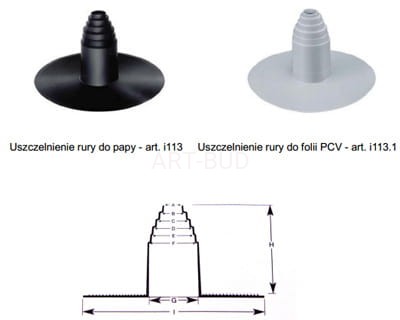 USZCZELNIENIE PRZEJŚCIA DACHOWEGO DO PAPY WYS. 185, ᴓ 35-90