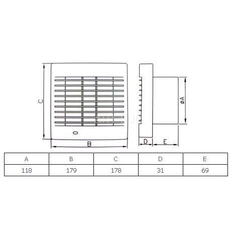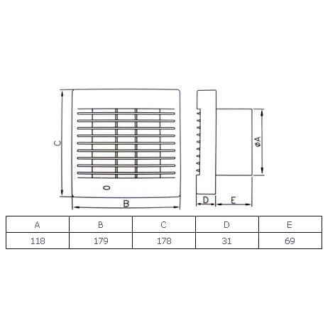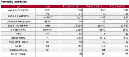 Wentylator Polo. Wersje: S-standard, WP-wyłącznik pociągany i przewód zasilający, WC-timer, WCH-wyłącznik czasowy, higrostat AZ-automatyczna żaluzja,PIR-czujnik ruchu .Średnica otworu 100, 120 lub 150 mm (zł/szt)
