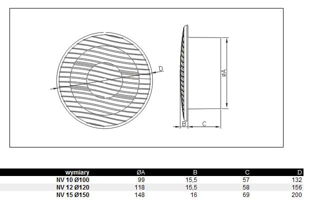 Wentylatory NV występują w trzech wymiarach: Ø100, Ø120 oraz Ø150