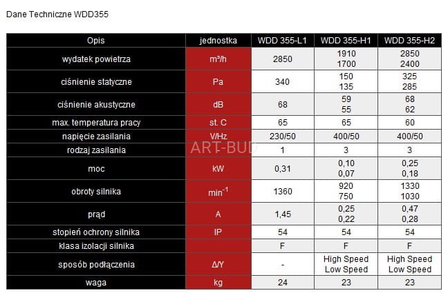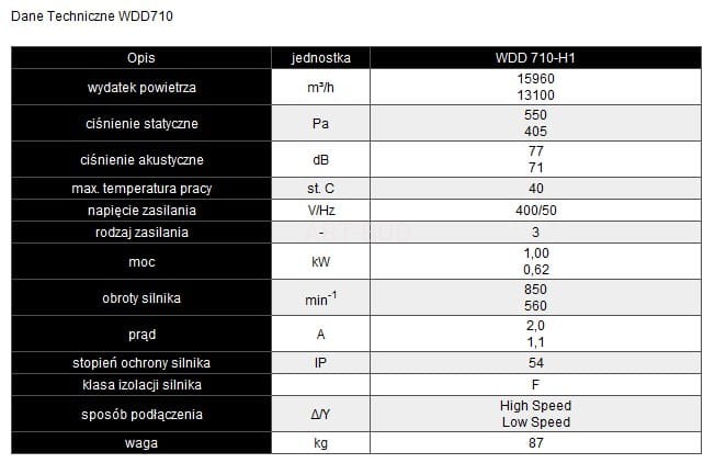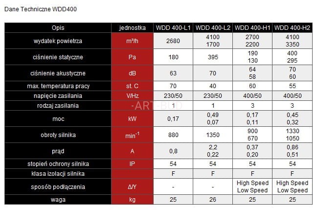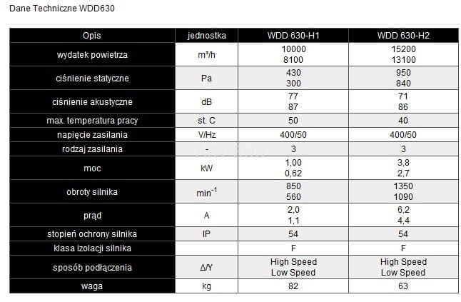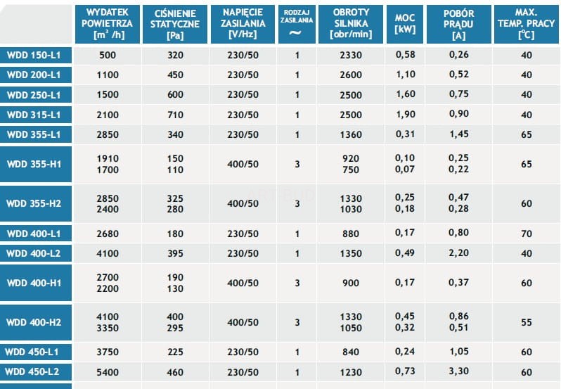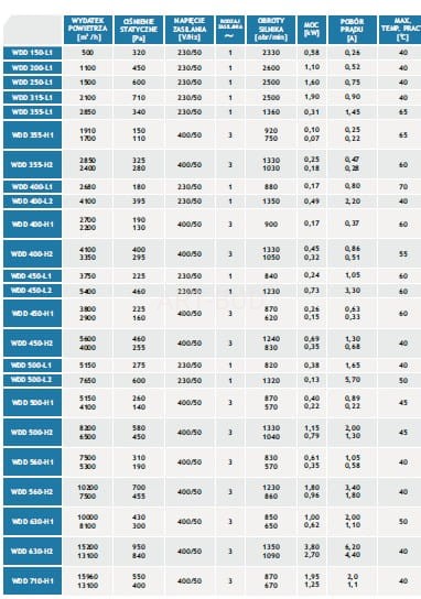 Opis dotyczy tylko poszczególnych wentylatorów, jednak dostępne są wszystkie prezentowane w tabeli. Prosimy o kontakt telefoniczny.