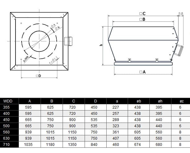 Wentylator dachowy WDD należy do grupy wentylatorów przemysłowych a jego konstrukcja zalicza go do wentylatorów promieniowych z pionowym wyrzutem powietrza. Wentylatory WDD mogą być instalowane na dachach, gdzie z powodu małej ilości miejsca nawiew powietrza znajduje się blisko wentylatora. Pionowy wyrzut powietrza minimalizuje ryzyko zasysania powietrza zużytego ponownie do pomieszczeń.