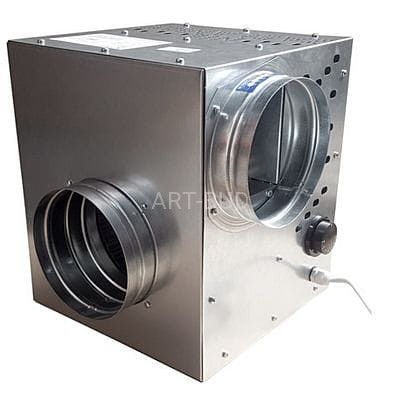 Konstrukcja wentylatora składa się z silnika indukcyjnego, asynchronicznego, jednofazowego z kondensatorem rozruchowym i bezpiecznikiem termicznym - przystosowanym do pracy ciągłej S-1, turbiny promieniowej, zamontowanej na osi wirnika, termostatu z zakresem regulacji temperatury progu zadziałania od 25 st.C do 90 st.C, oraz obudowy izolowanej wełną mineralną. Doskonały system zabezpieczeń gwarantuje bezawaryjną i efektywną pracę. Obudowa wentylatora dzięki otworom perforacyjnym zabezpiecza silnik przed przegrzaniem. Zamontowanie chłodzącego śmigła aluminiowego chroni przed przegrzaniem zespół łożyskowy i uzwojenie silnika którego komora jest oddzielona od przepływu gorącego powietrza.