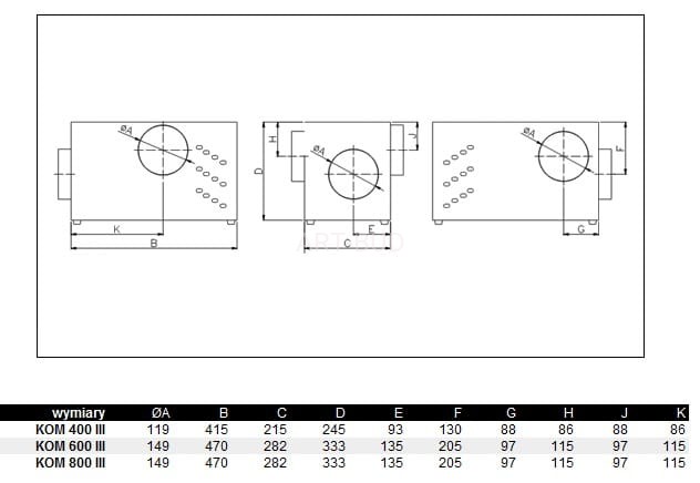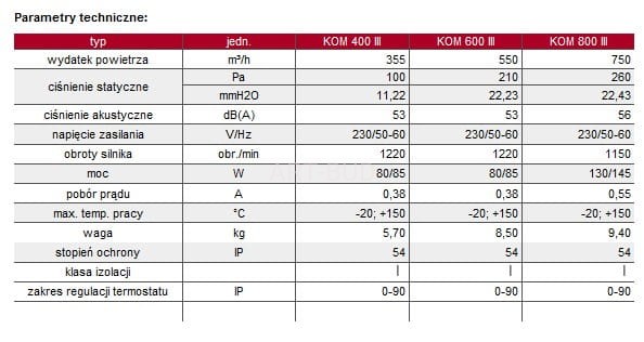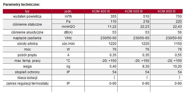 Wentylator kominowy Kom III by-pass 400, 600, 800 (zł/szt)