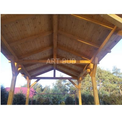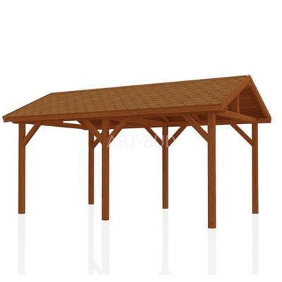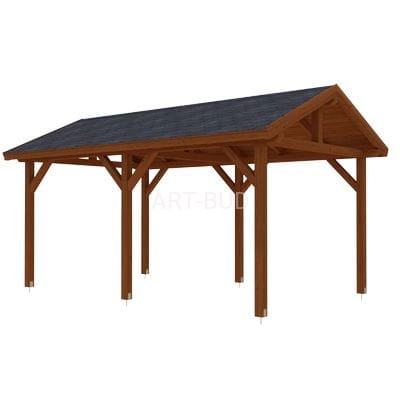 Sander to stylowa wiata garażowa o powierzchni zadaszenia 19,25 m.kw.(550x350 cm). Rozstaw słupów wynosi 500x300 cm - 15,0 m.kw. (powierzchnia zabudowy). Konstrukcja w tradycyjnym stylu, dach dwuspadowy. Dzięki zastosowaniu dużych przekrojów drewna (większych niż wynika to z wymogów wytrzymałości) wiata wygląda masywnie i okazale. Całość wykonana solidnie i z dbałością o szczegóły. Możliwa zabudowa szczytów i boków.