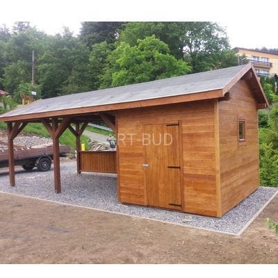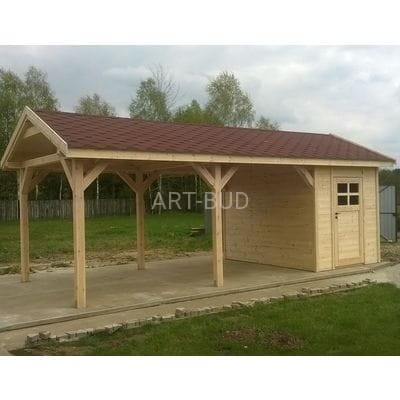 Wiata garażowa drewniana z dachem dwuspadowym i pomieszczeniem gospodarczym Mastro 300x700 cm