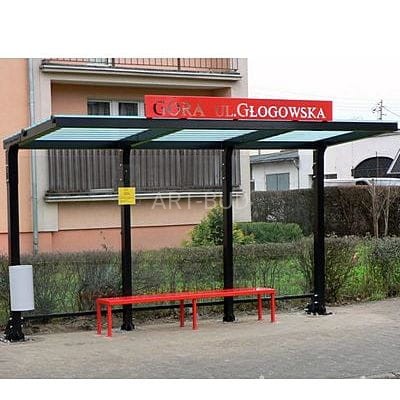 Standardowe wyposażenie miejskich przystanków komunikacyjnych, wiata zaprojektowana według podstawowych kryteriów funkcjonalnych, bez ściany czołowej i ścian bocznych, chroniąca przed intensywnymi opadami i przygotowana do intensywnego, nieskrępowanego ruchu pieszych korzystających z miejskiej komunikacji.