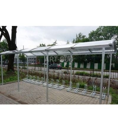 Zdjęcie przykładowe wiaty rowerowej 10 stanowiskowej.