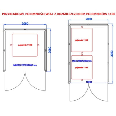 Wiaty śmietnikowe do podstawowy element infrastruktury mieszkaniowej, zwłaszcza w odniesieniu do budownictwa wielorodzinnego, zakładów pracy, urzędów i wszelkich innych producentów mas śmieciowych. Zamknięte wiaty chronią pojemniki przed niekorzystnymi warunkami atmosferycznymi, ingerencją zwierząt, a zwłaszcza ptaków, także zapewniają ich estetyczne przechowywanie oraz komponują się z otoczeniem. Standardowe rozmiary pozwalają przechowywać pojemniki o pojemności 1100l.