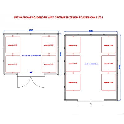 na kosze 3 x 240l, Wymiary drzwi (szer. x wys.): 945 x 1240 mm,
