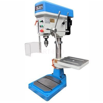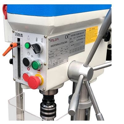 Nowy model wiertarki stołowej kolumnowej STILER WS16 z mocniejszym silnikiem 1,1 kW z imadłem maszynowym w komplecie. STILER WS16 to bardzo mocna wiertarka stołowa do wiercenia w metalu. Model ten posiada także opcję gwintowania. Maszyna niezbędna w każdym profesjonalnym warsztacie. Mocniejszy silnik 1,1 kW z zasilaniem 400V idealnie nadaje się do wiercenia otworów w twardym oraz grubym materiale. System regulacji naciągu paska umieszczony został w łatwo dostępnym miejscu. Czytelny panel sterowania wyposażony został we wszystkie niezbędne funkcję.