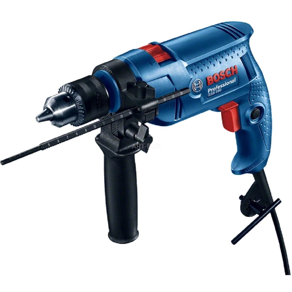 Wiertarka z udarem GSB 550 Bosch to niezawodna konstrukcja z pełnym ułożyskowaniem kulkowym. Znajdzie zastosowanie w różnorodnych pracach związanych z wierceniem otworów (wiercenie bez udaru w drewnie, metalu, tworzywach i ceramice, a także wiercenie z udarem w cegle i betonie). Posiada uchwyt który pozwala na mocowanie osprzętu, powszechnie dostępnego na rynku. Zoptymalizowana obudowa dla lepszej ochrony. Wyposażona w blokadę włącznika, która pozwala pracować bez trzymania dłoni na spuście. Można skorzystać również z ogranicznika głębokości wiercenia i pomocniczej rękojeści.