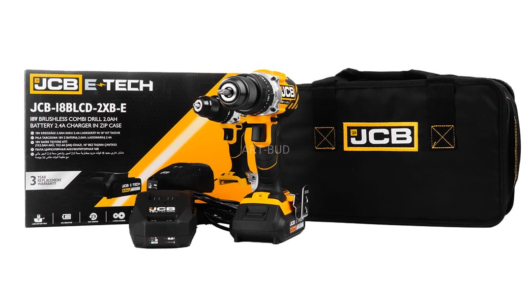 Wiertarko-wkrętarka akumulatorowa JCB 18V 65Nm - Zestaw