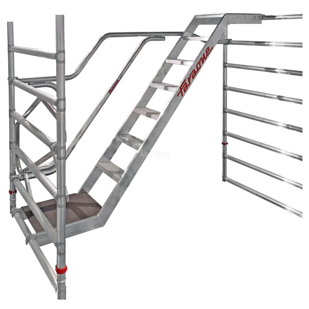 Wieże jezdne rusztowania mobilne ze schodami wewnętrznymi i bezpiecznym systemem montażu Top System ze Schodami G1 i ED1 135x180cm i 135x245cm Faraone