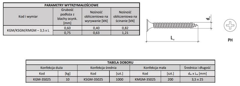 Wkręt do mocowania płyt G-K do podłoży stalowych KSGM-35025 3,5x25 1000szt
