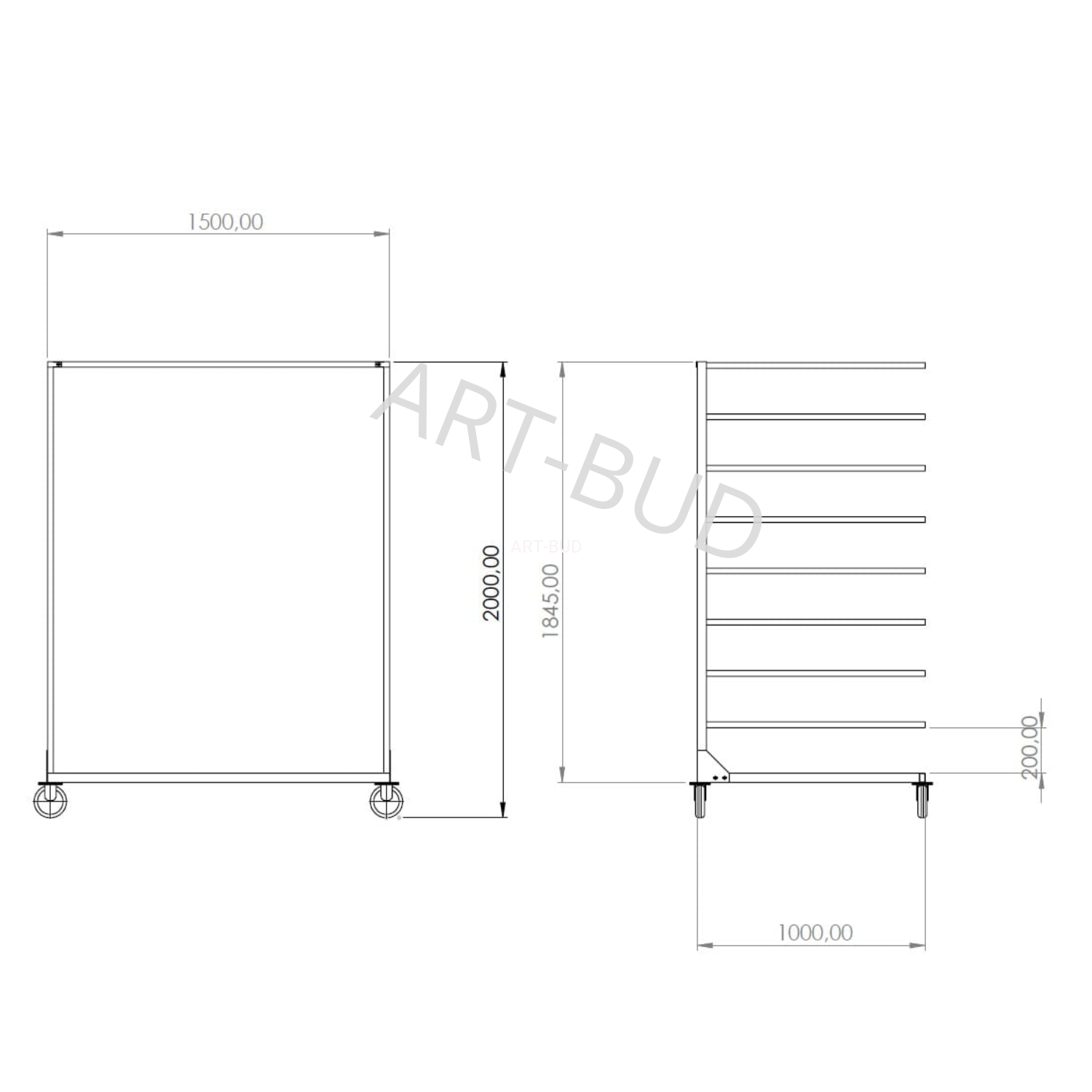 Wózek regałowy stolarski Mobilny regał wspornikowy jednostronny 1500x1000