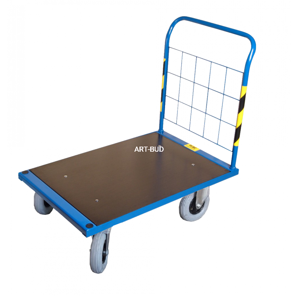 Ma wzmocnioną przestrzeń ładunkową, wypełnioną wodoodporną, antypoślizgową sklejką o grubości 12 mm. Konstrukcja wózka została wykonana z wysokiej jakości stali co gwarantuje jego wytrzymałość i bezpieczeństwo użytkowania a wyposażenie w 4 pneumatyczne koła (pompowane) o średnicy 200 mm- 2 stałe i 2 obrotowe - gwarantują komfort pracy na każdej powierzchni oraz dużą zwrotność w małych pomieszczeniach. W układzie jezdnym wózka zastosowaliśmy łożyska kulkowe, dzięki czemu użytkowanie jest w zasadzie bezobsługowe przez długi czas.