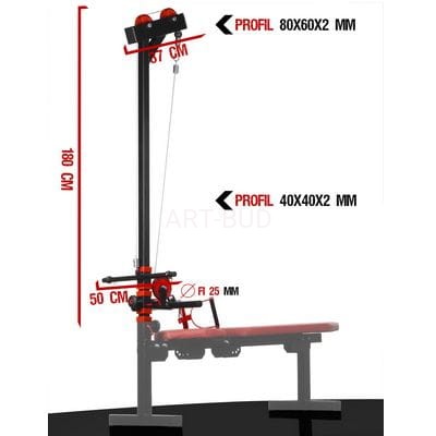 Pasuje do profilu 50x50x2 mm. Wyciąg pasuje do ławek z linii sprzętów Kelton Tryton, Spartan lub Hyperion.