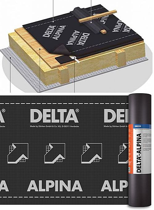 Wytrzymała na rozerwanie membrana wstępnego krycia na w pełni izolowane dachy spadziste. Otwarta dyfuzyjnie, stosowana również jako membrana szalunkowa. Membrana daje się łatwo i szybko układać; nie ma potrzeby stosowania kontrłat trapezowych. Membrana DELTA®-ALPINA, stosowana razem z elementami systemu DELTA®, takimi jak DELTA®-ALPINA BAND, DELTA®-ALPINA QSM oraz DELTA®-FLEXX BAND, gwarantuje wodoszczelne poddasze a ponadto spełnia rygorystyczne normy krajów alpejskich Szwajcarii i Austrii (SIA 232/1:2011 i ÖNORM B 3661:2017/ÖNORM B 4119, typ II). Membrana nadaje się do spawania za pomocą środka spęczniającego do sklejania DELTA®-ALPINA QSM lub gorącego powietrza.