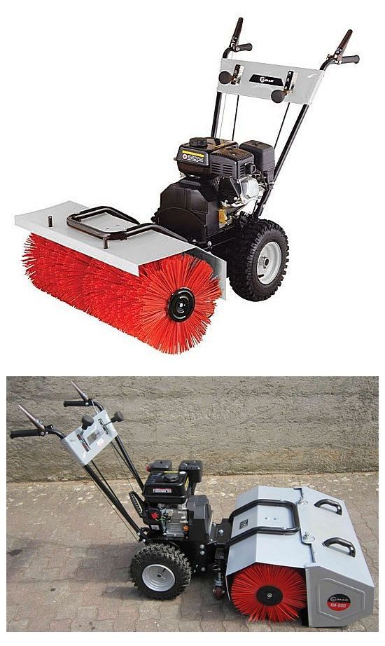 gminach, w przemyśle i do celów prywatnych. Zamiata mokre i suche liście, kamienie, papier, puszki i drobne zabrudzenia radzi sobie nawet z chwastami. Może być używana wszędzie na asfalcie, betonie, bruku, płytkach, chodniku, itp. Wyposażona jest w 5 biegów do przodu i 2 biegi wsteczne, napędzana jest przez mocny silnik 6,5 KM. Ze względu na dużą ilość pyłu podczas pracy w suchym środowisku silnik wyposażony jest w specjalny trwały filtr powietrza. Posiada obrotową szczotkę z możliwością regulowania wysokości oraz kąta pracy. Maksymalna prędkość wynosi 3 km/h, wysoki bierznik opon zapewnia najwyższą przyczepność do podłoża. W zestawie pług i kosz na odpady.