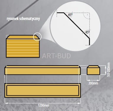 Wełna posiada jednostronnie fazowane krawędzie wg poniższego rysunku: