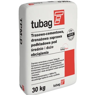 Zaprawa cementowa z trasem Tubag 0-4 mm do tworzenia drenażowych warstw podkładowych dla kamienia naturalnego, kostki brukowej, bruku klinkierowego, oraz betonowego i płyt przeznaczonych pod duże obciążenia (ruch pieszy i kołowy).