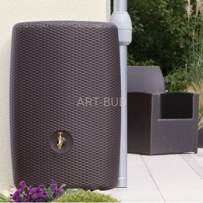 Plastikowy dekoracyjny 300-litrowy zbiornik na wodę deszczową SUNDA, to praktyczne i ekonomiczne rozwiązanie problemu, taniej, efektywnej wody użytkowej, a jednocześnie efektowne uzupełnienie małej architektury Twojego ogrodu. Faktura zewnętrzna pojemnika z polietylenu kształtem przypominająca kosz, odwzorowuje wiernie produkty z syntetycznego rattanu i doskonale komponuje się z meblami ogrodowymi z technorattanu w podobnym kolorze.
