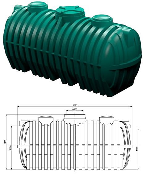 Zbiornik polietylenowy o pojemności 6000 litrów posiada konstrukcję użebrowaną, przystosowaną do wkopania do ziemi. Znajduje zastosowanie jako osadnik gnilny (szambo), zbiornik na deszczówkę lub inne płyny.