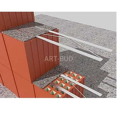 -Nierównomierne osiadanie budynku – Jeżeli budowa jest prowadzona na gruncie, który nie jest do końca ustabilizowany, lub podłoże składa się z warstw o różnej charakterystyce geologicznej, może wystąpić nierównomierne osiadanie budynku. W celu uniknięcia zarysowania ścian, zaleca się umieszczenie belek zbrojeniowych Murfora w pięciu pierwszych spoinach muru (począwszy od ściany fundamentowej), a następnie kontynuację zbrojenia co 400-600 mm.